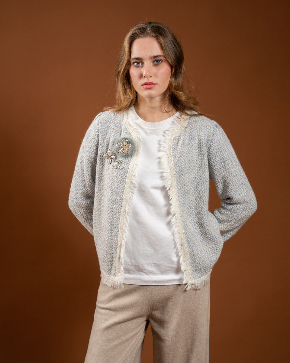 Cashmere short cardigan Fabric wool Size S, M, L Color beige, Blue Reviews There are no reviews yet. Be the first to review “Cashmere short cardigan”Cancel ReplyYour email address will not be published. Required fields are marked *Your rating * Rate… Perfect Good Average Not that bad Very poor Name *Email *Your review * Save my name, email, and website in this browser for the next time I comment. Submit
